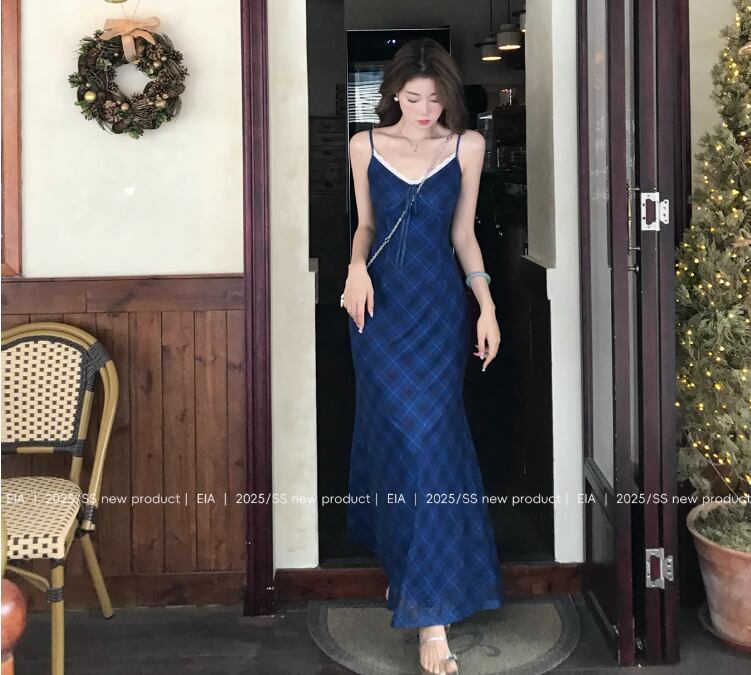 フランスのレトロなサスペンダードレス女性の春と夏のスリムロングスカート20