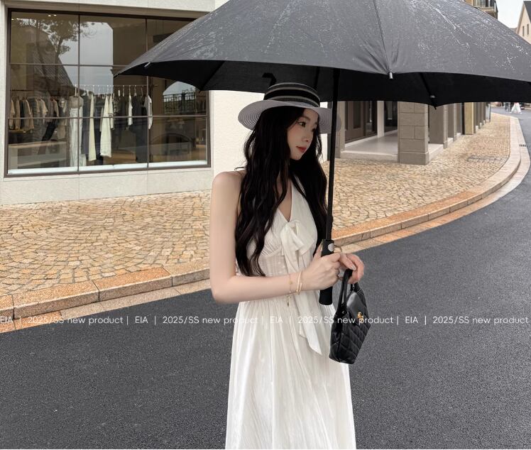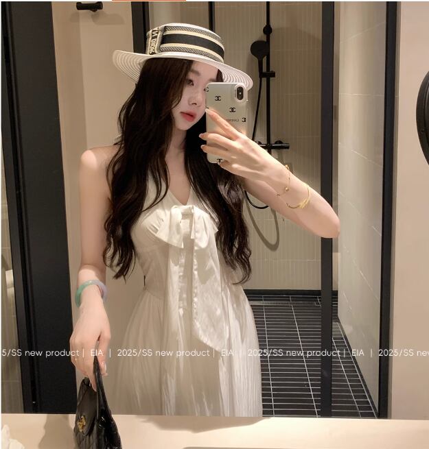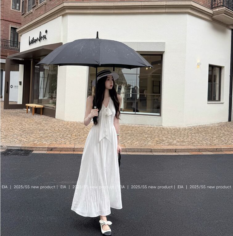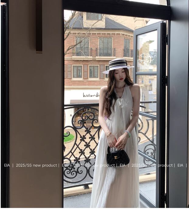 ホルターネックワンピース レディース 夏 エレガント 千金感 ホワイト バックレス ロングスカート21