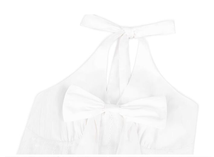【カラー】後ろゴムの小さなホルターネックワンピース[オフホワイト