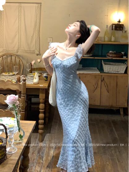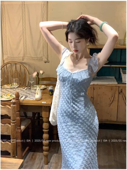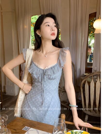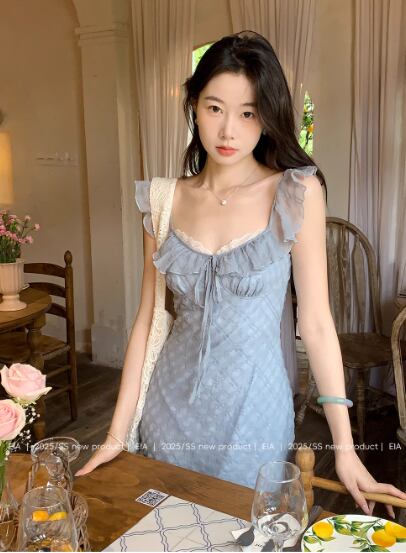 フレンチスタイルの小さなフライングスリーブドレス女性の夏のチェック柄ロングスカート22は、夏にぴったりのエレガントなアイテムです!トレンド感のあるフライングスリーブが、華やかさを加えつつ、涼しさも感じさせるデザインです。軽やかな素材が使用されており、快適に過ごせるため、デイリースタイルにも特別なシーンにも大活躍します。
