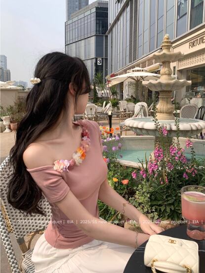 このTシャツは、デニムやショートパンツとの相性も抜群で、シンプルながらも洒落た印象を与えてくれます。トレンド感のあるデザインは、オシャレを楽しみたいあなたに最適です。また、アクセサリーをプラスすれば、デートやお出かけにも最適なコーディネートに変身!