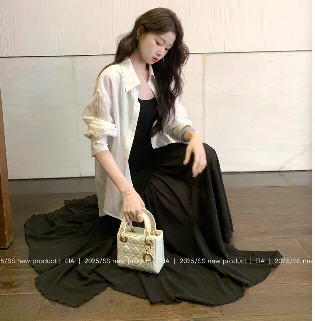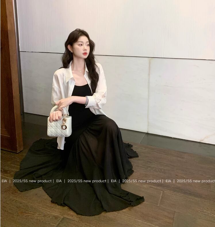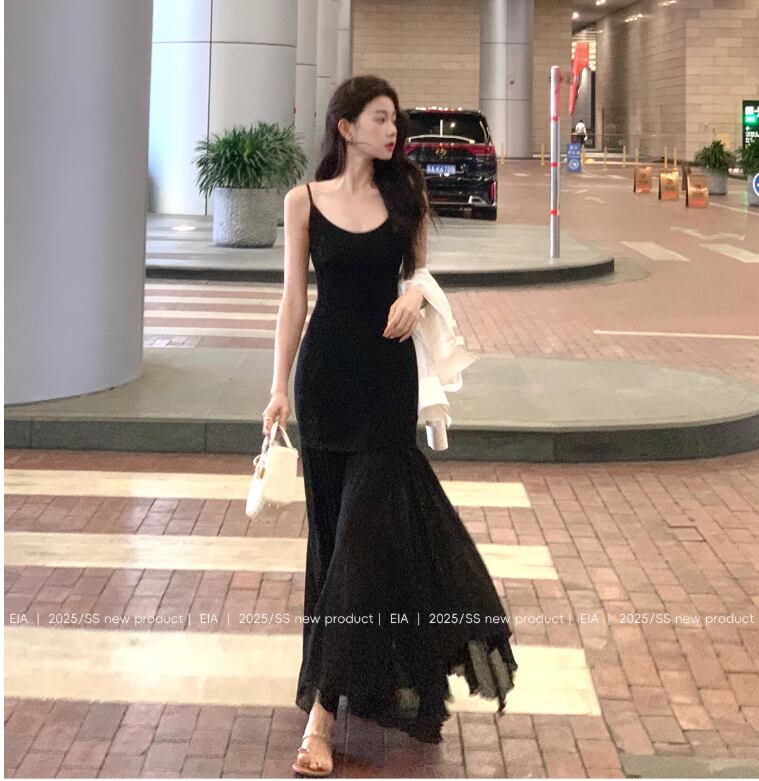 女性の夏のファッションに最適な黒のサスペンダードレスは、韓国風のデザインが魅力的なアイテムです!涼しげな素材と流れるようなロングスカートが、暑い季節にも快適な着心地を提供します。スリムなシルエットが、ウエストやヒップを美しく強調し、どんなシーンでも自信を持って着こなせます。