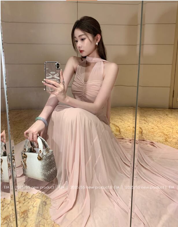 このフレンチホルターネックワンピースは、早春にぴったりの軽やかで華やかなアイテムです!柔らかなガーゼ素材が体に心地よくフィットし、リラックスした着心地をもたらします。フレンチスタイルのデザインが、女性らしい美しさを引き立ててくれる一着です。