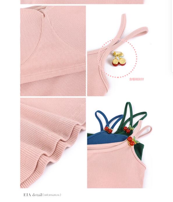 【カラー】【ピンク】サスペンダートップ【チェリーブローチ付き】中〜高伸縮性、胸パッド入り