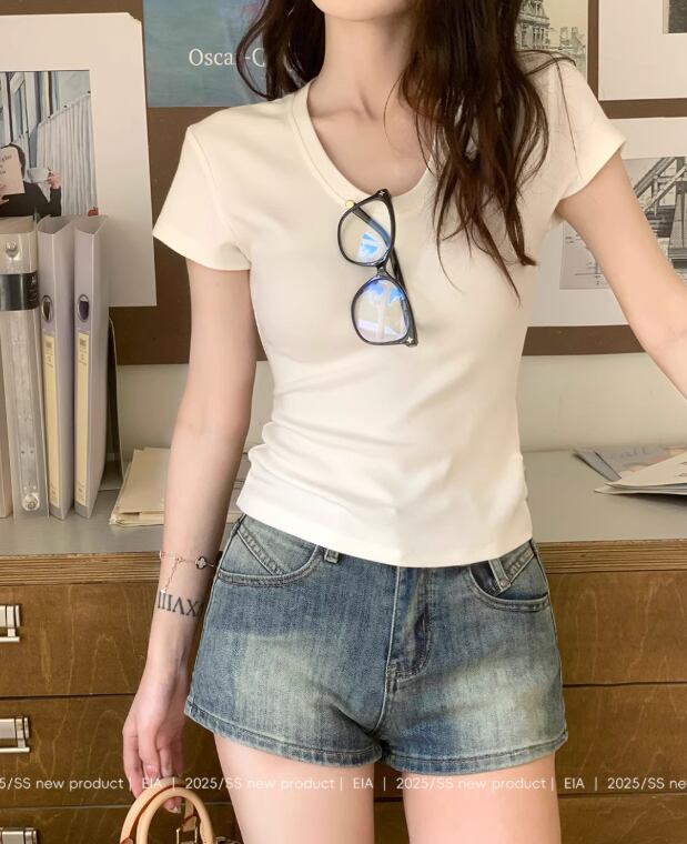 この魅力的なスリムウエストUネック半袖Tシャツで、夏のファッションを存分に楽しんでいただければと思います!ちょっとしたお出かけにぴったりの一着をぜひ手に入れてくださいね。