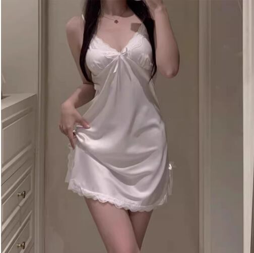 レディース セクシー アイスシルク スモールサスペンダーパジャマ 胸パッド付き 女の子用 新作 ナイトドレス 2025 ピュアデザイア 春夏 49
