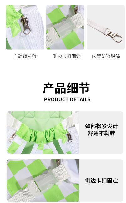 4本足をしっかりと支える設計で、安心してペットを収納できるバックパックスタイルが特徴です。チェストストラップ付きで安定感があり、飼い主も持ち運びやすくなっています。シンプルかつスタイリッシュなデザインなので、どんなシーンにもマッチし、おしゃれを意識したペットにも最適です。
