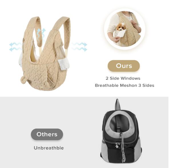 大容量設計が特徴で、荷物を十分に収納できるため、長時間のお出かけにも対応可能です。スタイリッシュな外観は、どんなシーンにもフィットし、飼い主様のファッションにも嬉しいポイントです。通気性があるため、愛犬が快適に過ごせるのはもちろん、持ち運びもとても楽です。