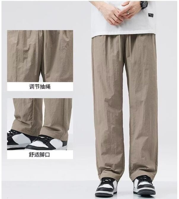 アイス シルク パンツ メンズ カジュアル パンツ ルーズ ストレート 2025 夏 新作 速乾 パンツ 薄手 ワイドレッグ スポーツパンツ 94
