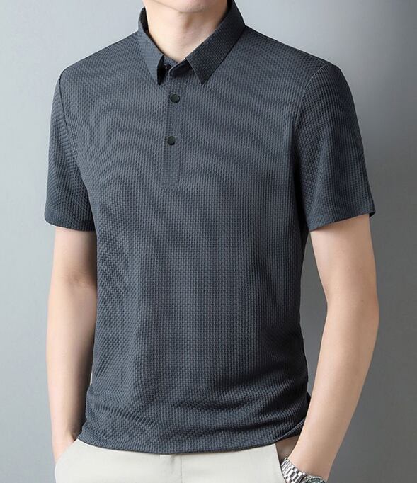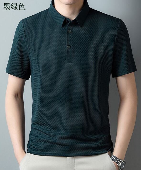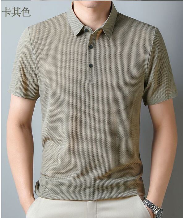 夏 高級 メッシュ アイス シルク 半袖 Tシャツ メンズ シャツカラー 無地 ポールス リップ ポロシャツ 半袖 メンズ 服 99