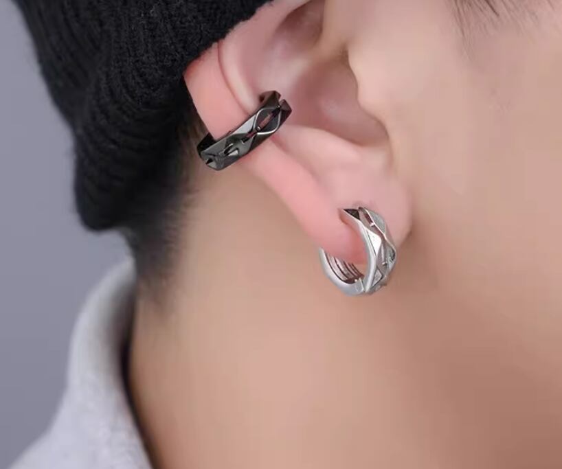 クールでスタイリッシュな女性用クリップ式イヤリング(ピアスなし)、男性用と女性用の耳軟骨クリップ、高級イヤーフック875