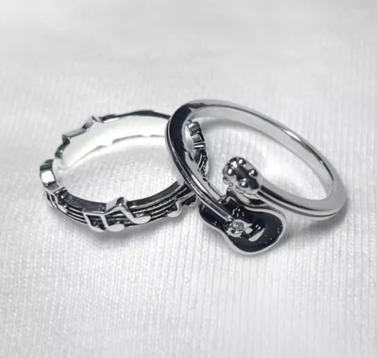 ギターリング、トレンディなロック楽器リング、ニッチでハイエンドなリング、オープンな人差し指リング、ユニークな音符リング884